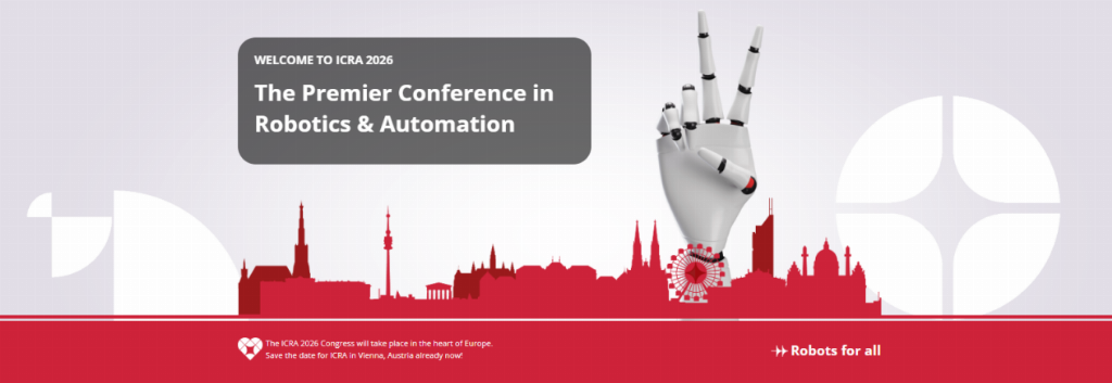 2026 IEEE机器人与自动化国际会议(ICRA 2026)是IEEE机器人与自动化学会的旗舰会议,ICRA 2026以“Robots for All(机器人惠及所有人)”为主题。会议将于2026年6月1日至5日在奥地利维也纳维也纳会议中心(the VIECON)举行。ICRA 2026将聚集世界顶尖的机器人领域研究人员和行业领袖,分享想法、交流知识,为人类的利益推进机器人领域前沿发展。