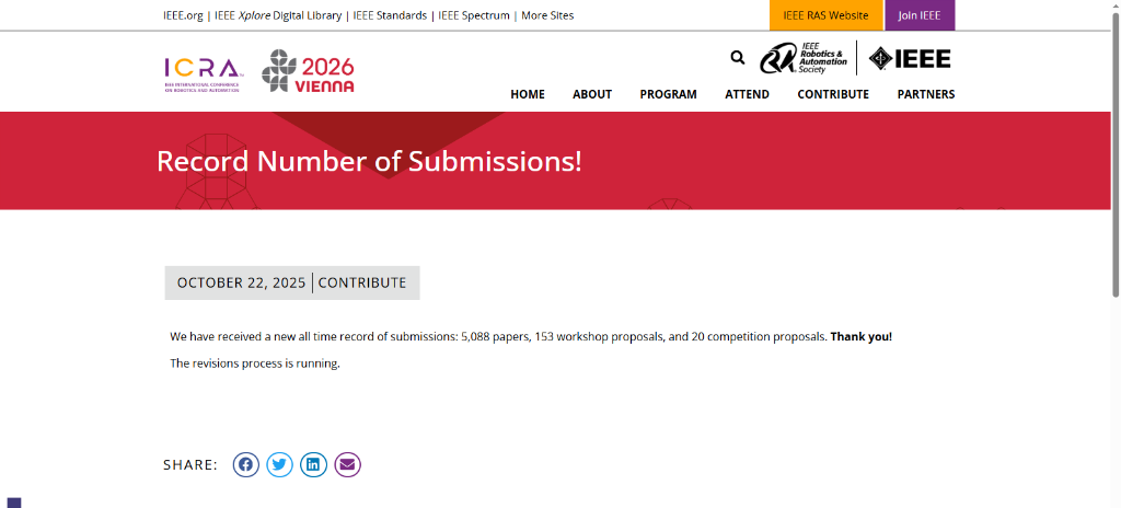 标题:机器人顶会ICRA 2026审稿启动:投稿量创历史新高
