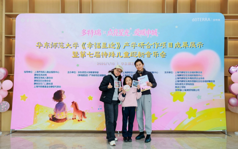 2026年1月10日,上海华东师范大学的报告厅内,暖意与星光交织,由多特瑞精油携手关爱基金支持的“点亮星光 爱暖申城”华东师范大学《幸福星途》产学研合作项目成果展示暨第七届特殊儿童迎新音乐会活动在此温馨启幕。