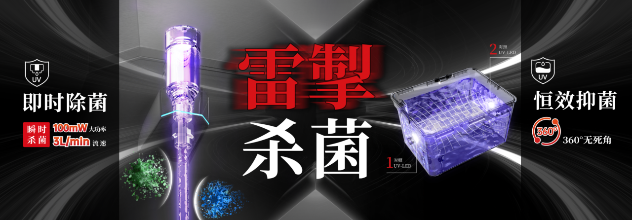 本源雷掣杀菌系统包括先进的大功率UV-LED、特殊的结构设计和智能算法杀菌程序,同步实现温水箱的恒效抑菌和出水嘴处水流及空气的即时除菌,确保水质安全无虞。
