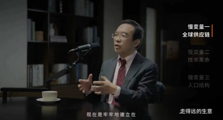 在何帆看来,企业要在出海浪潮中立足,关键是看清慢变量。相比汇率、运费、流量、价格战等短期波动、可快速调整的“快变量”,那些短期不显眼、却决定长期成败的“慢变量”,才是核心。当前,影响中国企业出海的三大慢变量分别是:全球供应链重构、技术革命和人口结构变化。