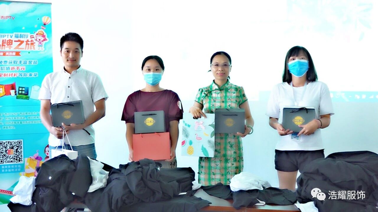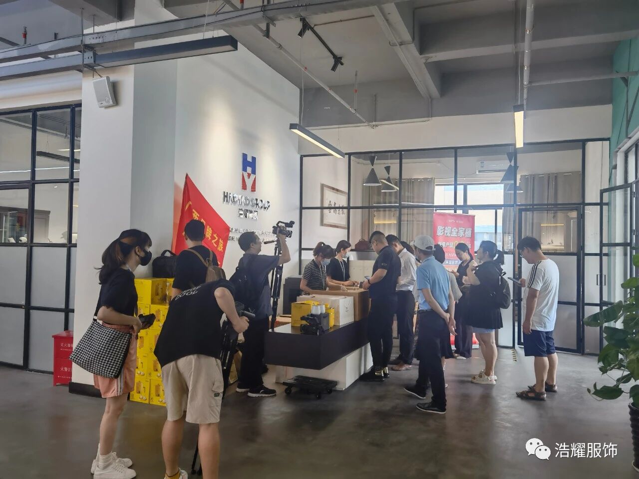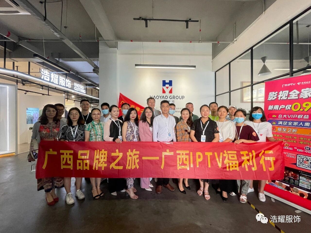 7月24日下午,由广西IPTV和浩耀服饰集团携手举办的《服美浩耀》活动在浩耀服饰集团位于经开区鸿基工业园的总部展示中心展开。以广西品牌协会会长李的准先生为代表的15位优秀民营企业家和15位IPTV幸运观众代表,约30位嘉宾莅临活动现场。