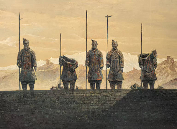 孙永印是一位独具匠心的杰出艺术家,以其深厚的艺术功底和独特的人文视角,在艺术界赢得了广泛的赞誉。其作品不仅在技法上精湛,更在人文内涵上蕴含着丰富的思想,成为当代艺术的重要组成部分。他的作品充满了对生活的热爱和对美的追求,通过鲜活的笔触和丰富的色彩,展现出生活中的点点滴滴,描绘出一个个充满生命力的画面。如他在画作中所塑造的兵马俑形象,让人感受到情感的共鸣和象征的意义,充满了历史厚重与生命的质朴。他通过人物的神韵、形态以及背景的设置,以此展现出兵马俑的立体感和深度。他的每一幅作品都像是一首诗,讲述着一个动人的故事。这种由外向内的转变,不仅是绘画色彩语言形式演变的必然结果,也是艺术家主体意识不断不断深化、情感表达日益丰富的体现。