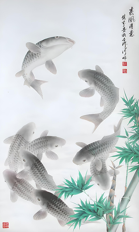 几十年来笔耕不辍,主攻鱼水题材,创作技法注重笔墨线条,融汇中西,作品寓意吉祥,清新脱俗而自成一格,雅俗共赏。