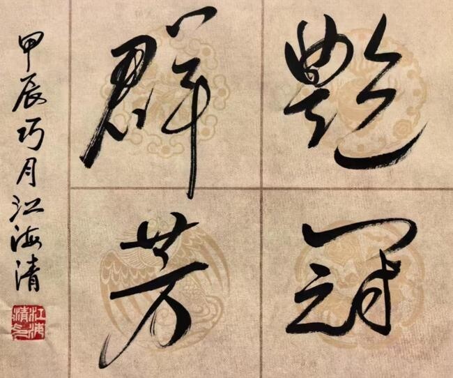 江海清有着积极的人生观,正确的艺术观,书法中传递出当代文化的审美意趣,正如清代石涛所言:“笔墨当随时代”。因此,他对书法的用笔、结字、章法、墨法、气韵有着清晰的理解,点线的自然性和笔触蕴藏着内在精神力量,用笔灵动,线条粗细变化丰富,潇洒流落,真挚的情感与精神追求,都在笔墨线条中一一展开,流露出灵动之韵,以豪放的笔触和富有个人情感的表达,创造出独具风格的诗篇。可以说,江海清的书法,不仅仅是艺术,更是一种文化、一种精神,是传统与时代的交融,是线条与心灵的对话。我们能领略到传统文化中的深厚意蕴,又能触摸到时代的脉搏。他为书法的发展注入新活力,成为当代书界不可忽视的艺术力量,激励着更多书家在传承与创新之路上不断探索前进。