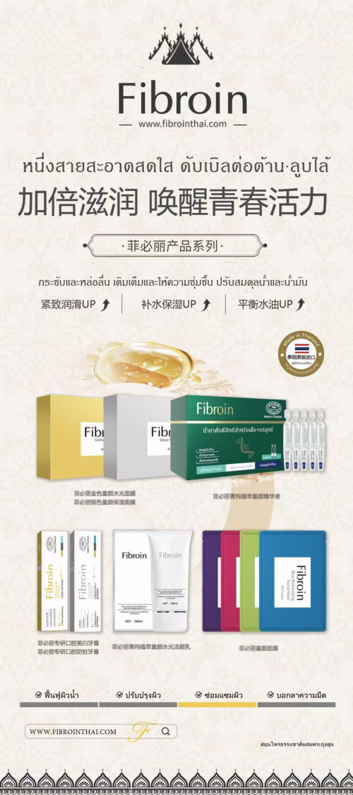 2024年,Fibroin决定进行全面战略升级,完成所有进口化妆品备案正式进驻中国市场,同时启用中文名称“菲必丽”。品牌对产品包装进行全面升级,增加了防伪功能和官方网站查询系统,建立了从泰国工厂到中国海关的全程溯源系统。