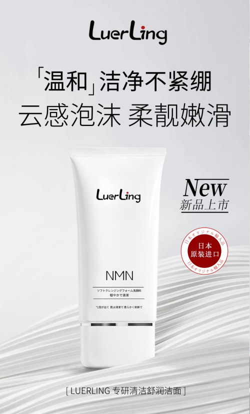 新品洗面奶延续了LuerLing品牌的科技抗衰理念,将高纯度NMN成分与洁面技术结合,旨在提供更深层次的肌肤清洁和抗衰老护理。