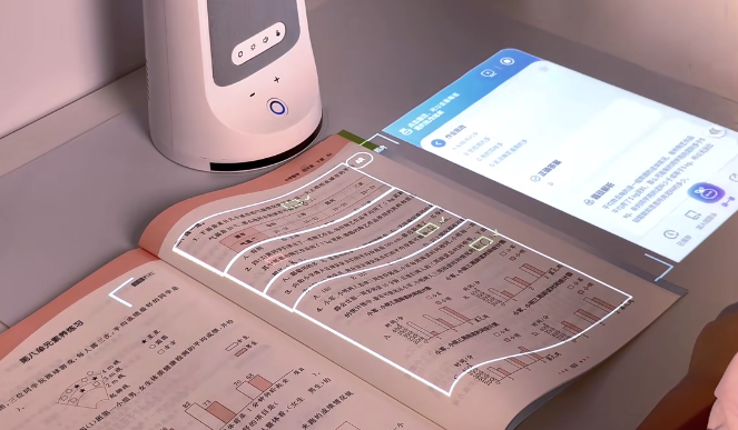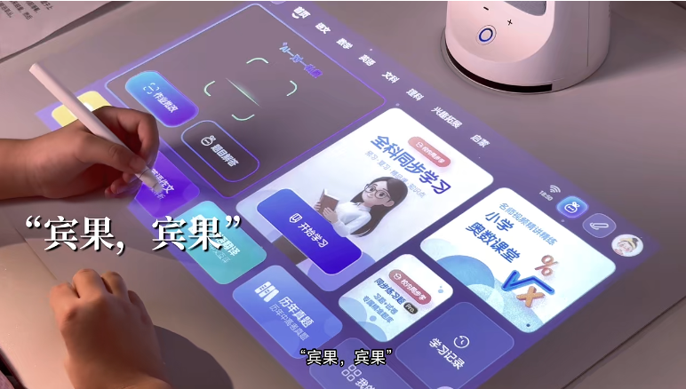 产品创新采用漫反射成像原理,取代传统电子屏直射交互模式,光线经桌面均匀散射后成像,能量低且无频闪,从根源上避免了集中光线对眼睛的刺激。在此基础上,搭载的AI智能辅导系统发挥强大作用,覆盖幼儿园至高中全学段、全学科,孩子只需唤醒“宾果,宾果”,就能获得查单词、解难题、批改作文等一对一指导。AR纸电交互功能实现“哪里不会指哪里”,20000+名师视频、1000 +本同步教材免费开放,意图识别引擎精准匹配解题策略,新增的“手抄报AI设计”功能大幅提升创作效率。这些智能功能,是在安全光环境基础上的加分项,让孩子学得高效、看得安心。
