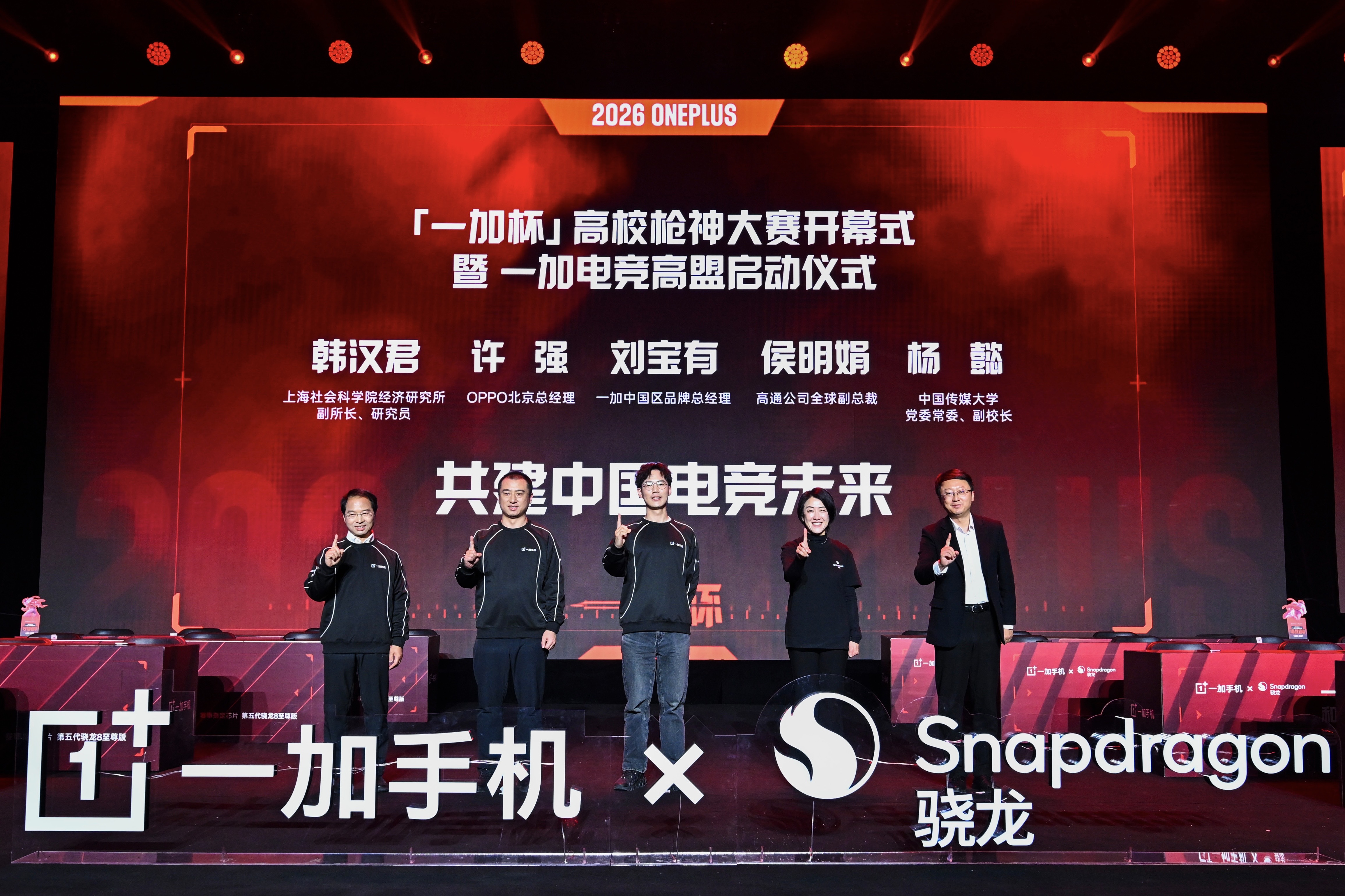 2026 年 3 月 9 日,由一加举办的「一加杯」高校枪神大赛在中国传媒大学正式开幕。本届赛事在专业性、参赛便捷性、赛事权益方面带来三大全新升级,致力于打造更专业的竞技平台,为广大电竞爱好者带来更便捷的参赛方式以及更丰厚的赛事奖励。作为和平精英官方授权的行业领衔赛事,「一加杯」自去年首次举办以来便受到行业广泛关注,实现了高校覆盖率与参赛人数双双突破。在开幕式现场,一加中国区品牌总经理刘宝有、高通公司全球副总裁侯明娟、上海社会科学院经济研究所副所长韩汉君以及中国传媒大学党委常委、副校长杨懿等嘉宾共同见证了这一电竞盛会的开启。